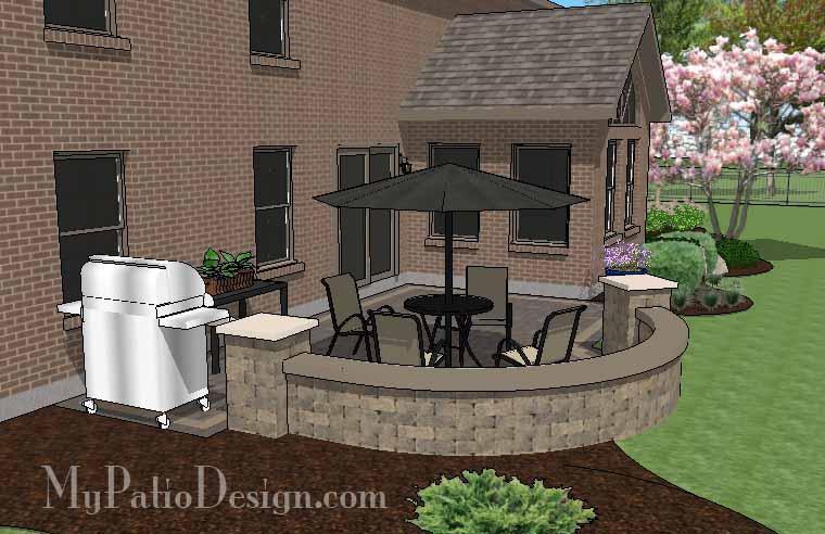 • 24″ Tall Seating Walls with Columns at Each End.  Built Using Ornamental Patio Block