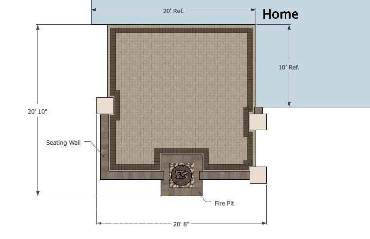 • 24″ Tall Seating Walls with Columns at Each End.  Built Using Ornamental Patio Block