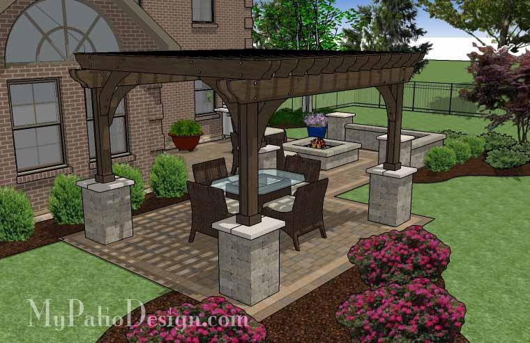 • 12′ x 16′ Cedar Pergola with Column Wrapped Posts.