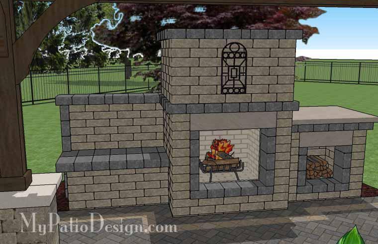 • Outdoor Wood Burning Fireplace with Woodbox and Bench.