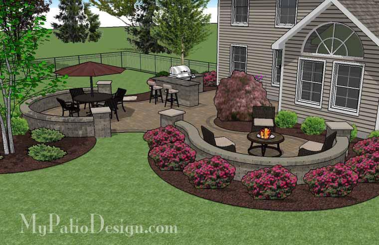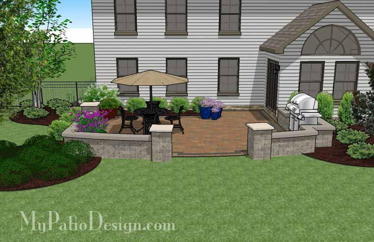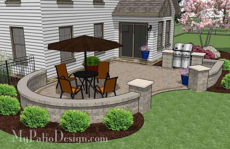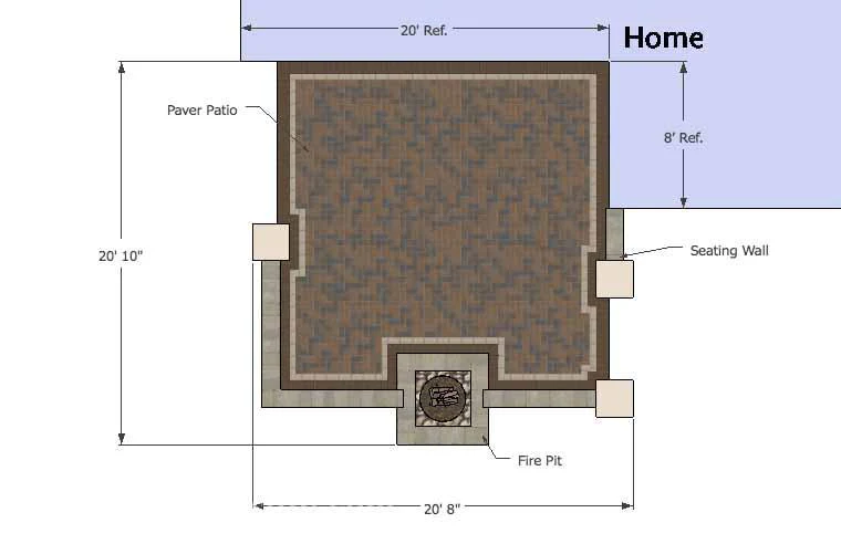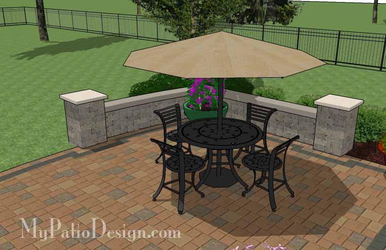 - 24″ Tall Seating Walls with Columns at Each End. Built Using Ornamental Patio Block