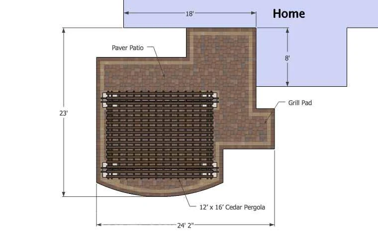 - 12′ x 16′ Cedar Pergola with Column Wrapped Posts.